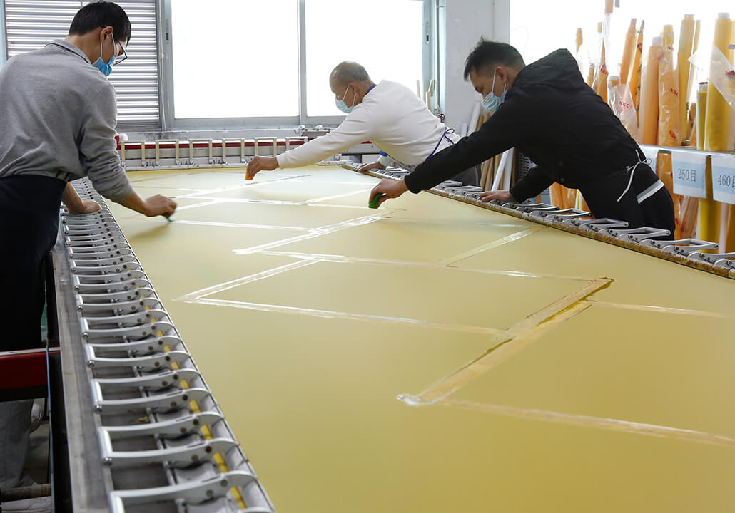 公司集研發、生產、銷售、服務于一體,精致制作聚酯網版、復合式鋼絲網版。秉承“誠信、專業、共贏”的經營理念,堅持“用戶至上、質量第一”管理信念 ,產品廣泛應用于Touch Panel觸摸屏、Cover Lens玻璃蓋板、LCD背光模組、FPC柔性線路板、觸控面板、汽車電子、微電子、導光板、太陽能、按鍵、PCB線路板、銘板標牌、陶瓷花紙、手機后蓋精密網版等產業領域。